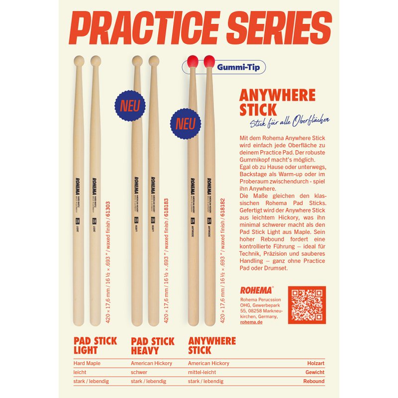 Der Rohema Pad Stick Heavy ist die kraftvollere Variante der Pad Stick Serie und ideal für intensives Techniktraining in Kombination mit einem Practice Pad. Er eignet sich perfekt für das Üben von Kontrolle, Präzision und Ausdauer – egal ob im Proberaum oder zu Hause.